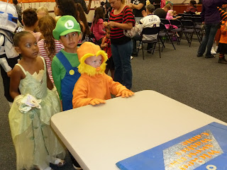 He played each of the games and was ready to leave, so we indulged him and came back home. It was kind of warm in the community center and his costume is pretty warm too, so he had to be hot under there. Shel & I were amazed how many people did not know who he and Colin were supposed to be. I thought The Lorax was a pretty popular movie! He was so stinkin cute though!